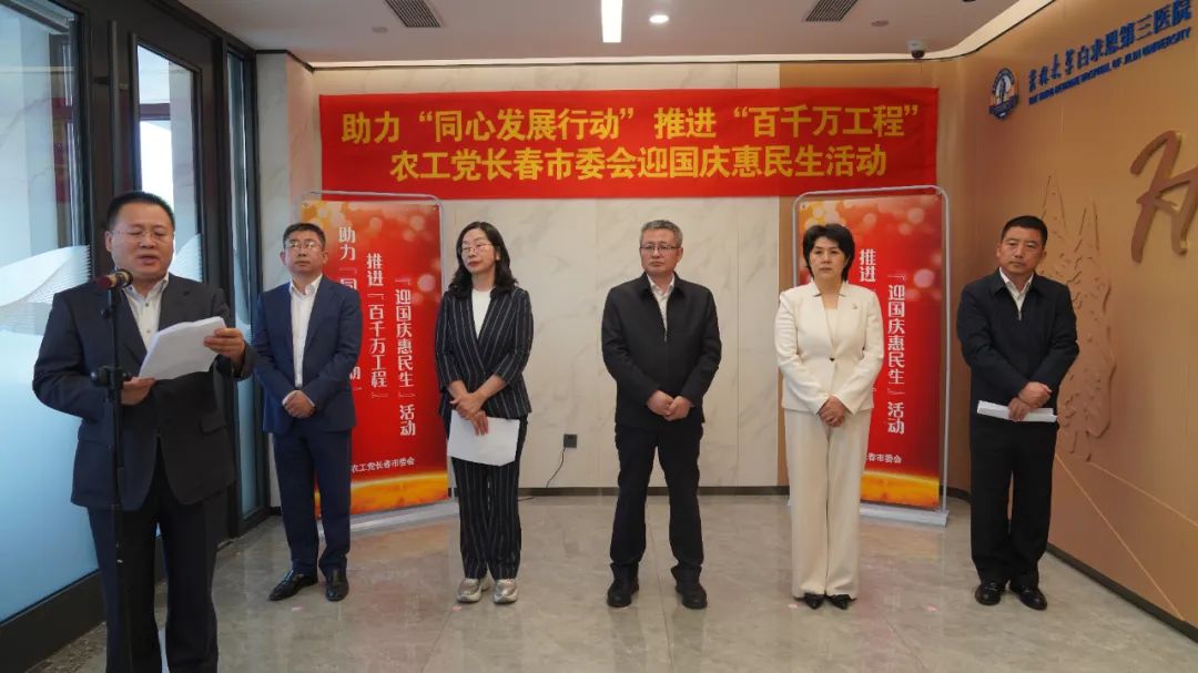 ?吉林省政協副主席、農工黨吉林省委會主委秦海濤在致辭中指出,農工黨長春市委會立足農工黨界別特色,圍繞服務長春市發展大局和民生福祉,謀劃開展了以“百名農工黨醫療專家,培訓千名醫務工作者,服務萬名群眾”為目標的“百千萬工程”活動,并與“凝心鑄魂強根基、團結奮進新征程”主題教育、吉林省統一戰線“吉善同心工程”和長春市統一戰線“同心發展行動”深度融合,舉辦了一系列主題鮮明、形式多樣的健康服務活動,收到了社會各界的良好反響和群眾的廣泛好評。秦海濤強調,在強國建設、民族復興的關鍵時期和中共中央實施東北振興戰略20周年的重要節點,希望農工黨長春市委會把此次“迎國慶 惠民生”活動作為一個新的起點,在中共吉林省委和長春市委的領導下,堅定擁護“兩個確立”、堅決做到“兩個維護”,將推動“全面振興取得新突破”作為今后一個時期的中心工作,將助力“吉善同心工程”和“同心發展行動”作為積極履職盡責的著力點,不斷豐富“百千萬工程”活動載體、擴大受益群眾覆蓋面,為推動長春全面振興實現新突破,譜寫中國式現代化的吉林篇章,貢獻新的更大的農工黨力量。